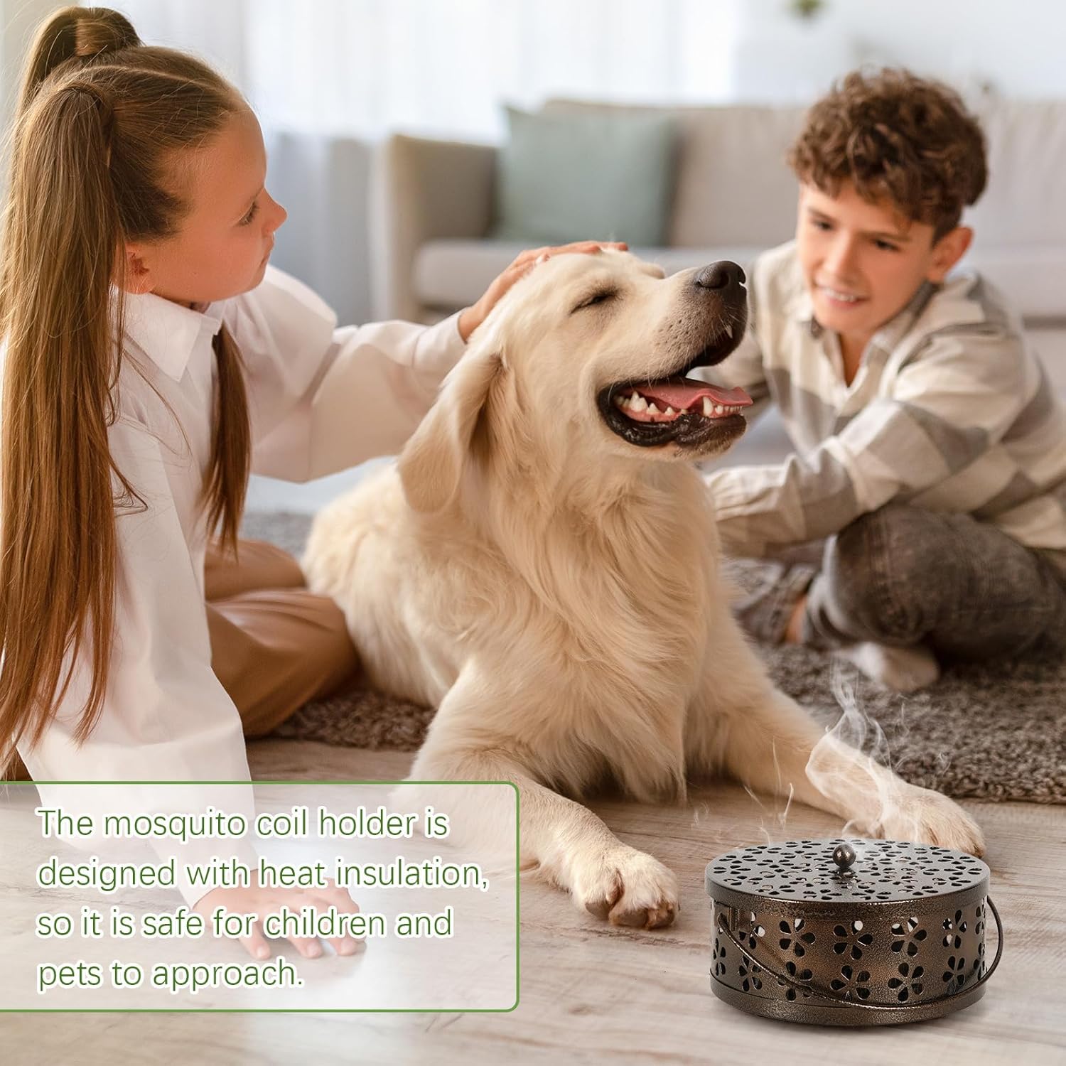 Portable Iron Mosquito Coil Holder with Handle Round Heat-Resistant Incense Holder (Bronze)