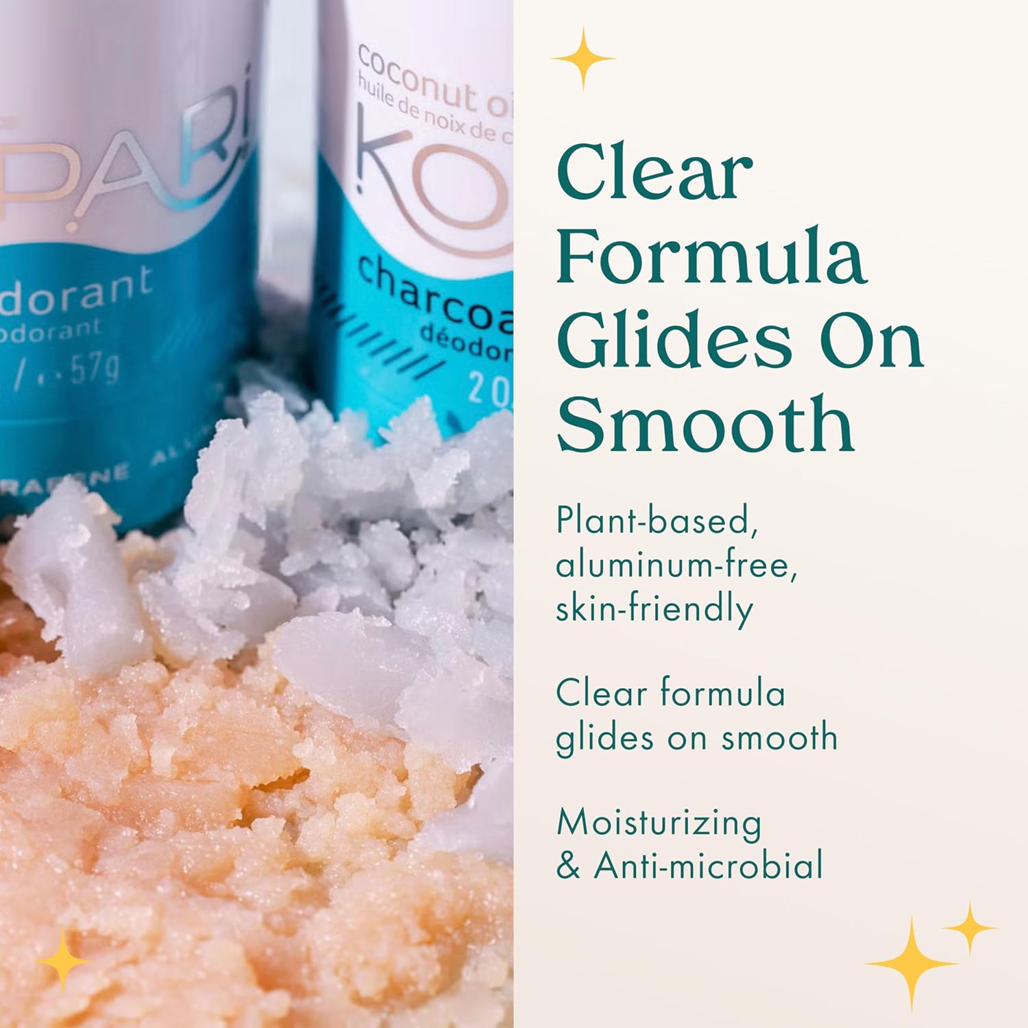 Kopari Aluminum Free Coconut Deodorant, Non Toxic & Clean Plant-Based, No Aluminum, Parabens or Baking Soda, Long Lasting Protection, Charcoal 2 oz