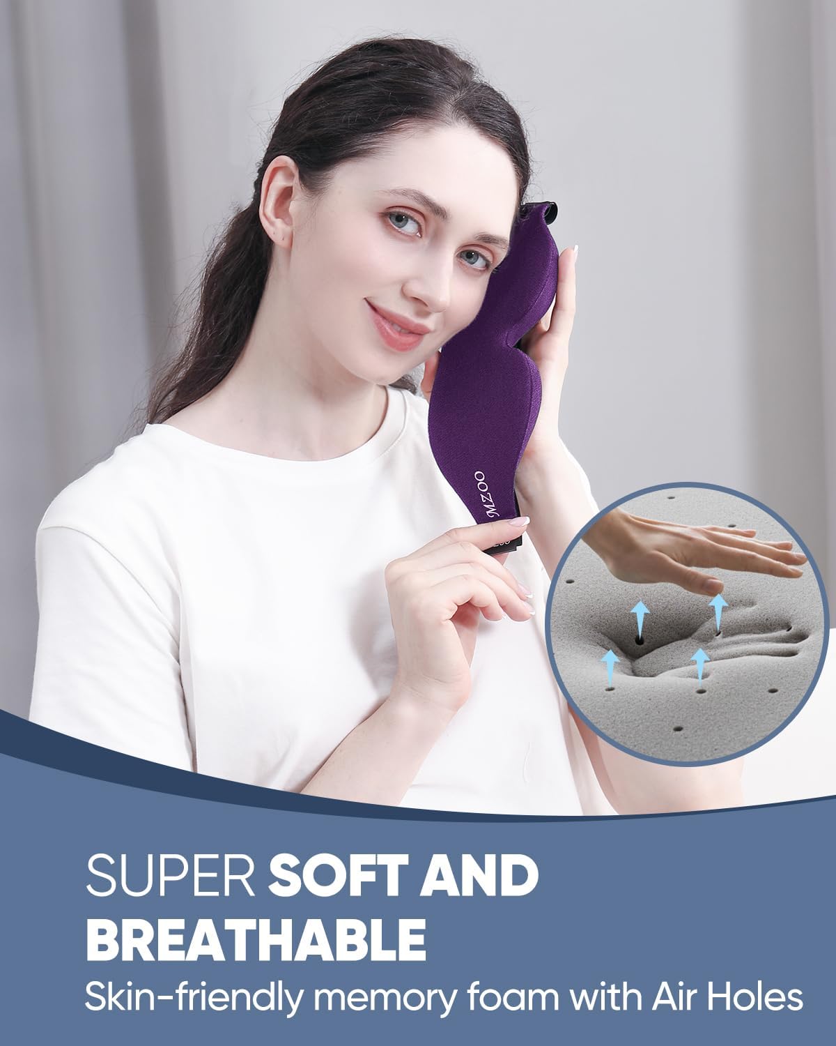 MZOO Luxury Sleep Eye Mask for Side Sleeper Men Women, Zero Eye Pressure 3D Sleeping Mask, Light Blocking Patented Design Night Blindfold, Soft Eye Shade Cover for Travel, Purple