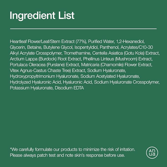 - ✔️Excellent Skin Trouble Care. This is the toner that contains houttuynia cordata extract to the highest level, which is good for skin trouble care. Heartleaf is very effective for calming skin troubles.