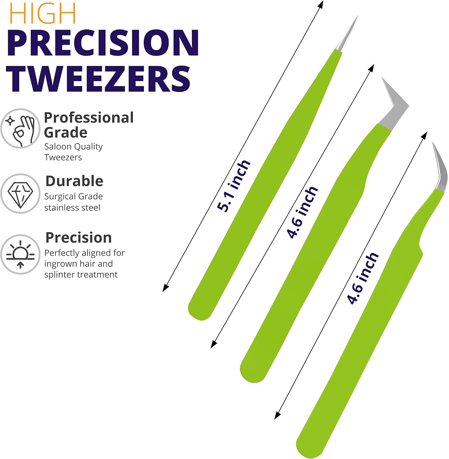 SIVOTE Lash Tweezers for Eyelash Extensions for Volume, Isolation & Classic Lashes, 3 Pack, Green