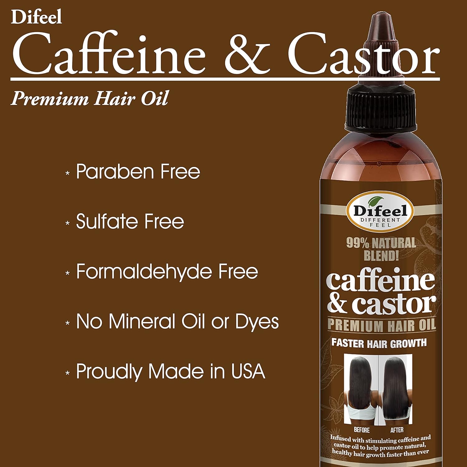 - Caffeine Oil for Hair Growth - 99% Natural Blend of Caffeine and Castor Oil that promotes faster and healthier hair growth.