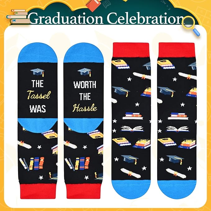 - GRADUATION GIFTS: Grad school socks featuring a hidden message: "THE Tassel WAS WORTH THE Hassle."