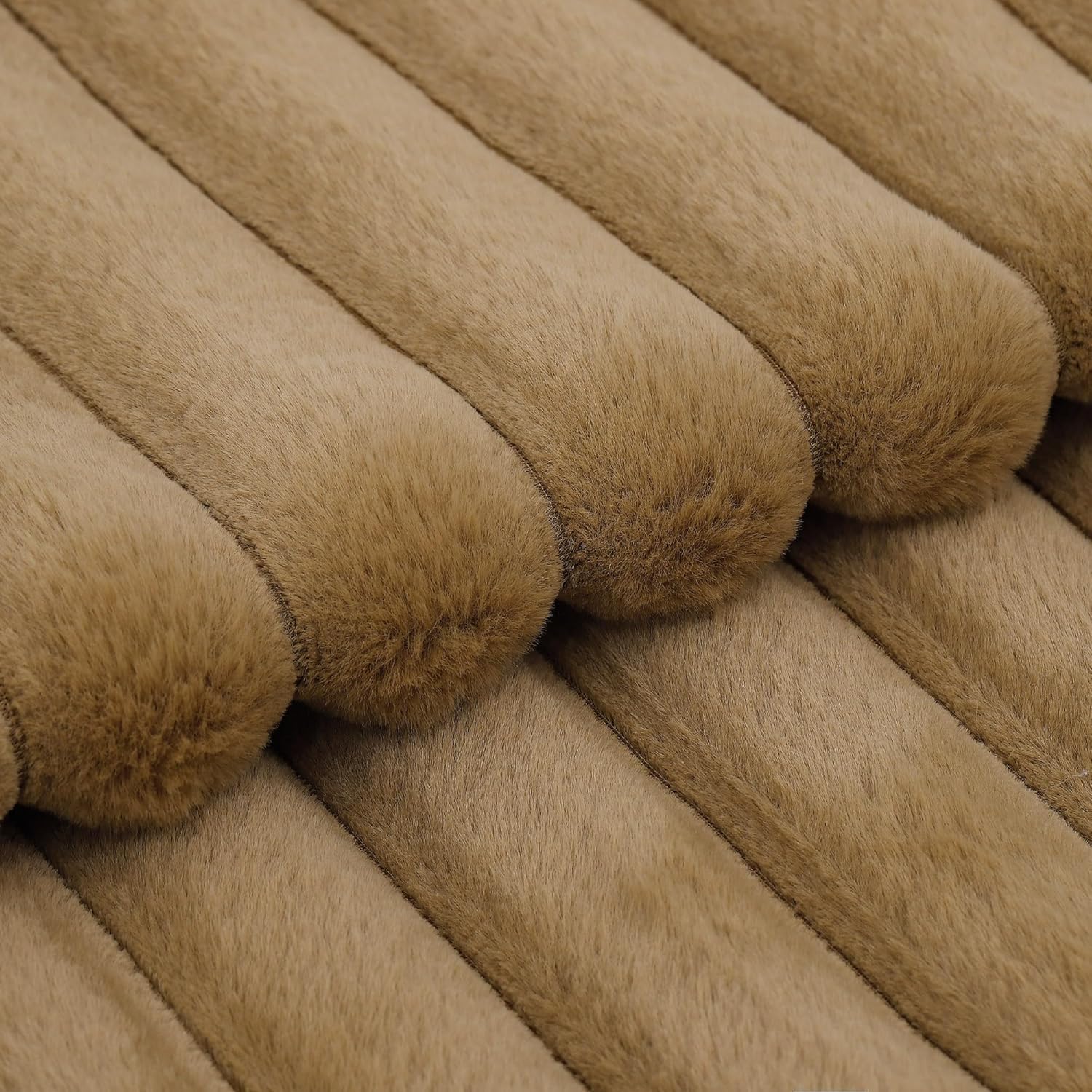 MADIZZ Set of 2 Faux Wool Plush Decorative Throw Pillow Covers 16x16 Inch Camel Fluffy Striped Soft Decorative Cushion Cover for Sofa Bedroom Pillow Shell