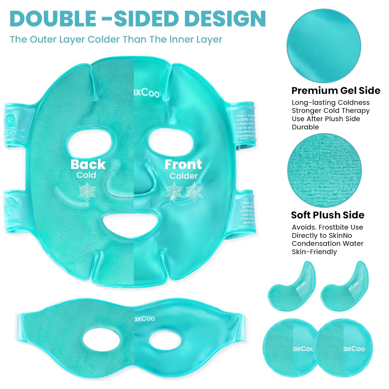 - Effective Pain Relief : The combination provides a ice mask for face, a cooling eye mask, 2 eye ice pack and 4 round ice packs for injuries. It is designed for patients with dry eyes, headaches, migraines, allergies, sinus pressure, toothaches and lactation pain relief. Our face ice pack can also be used for daily skin care, to relieve post-work stress and post-travel fatigue, and to reduce dark circles and swollen eyes.