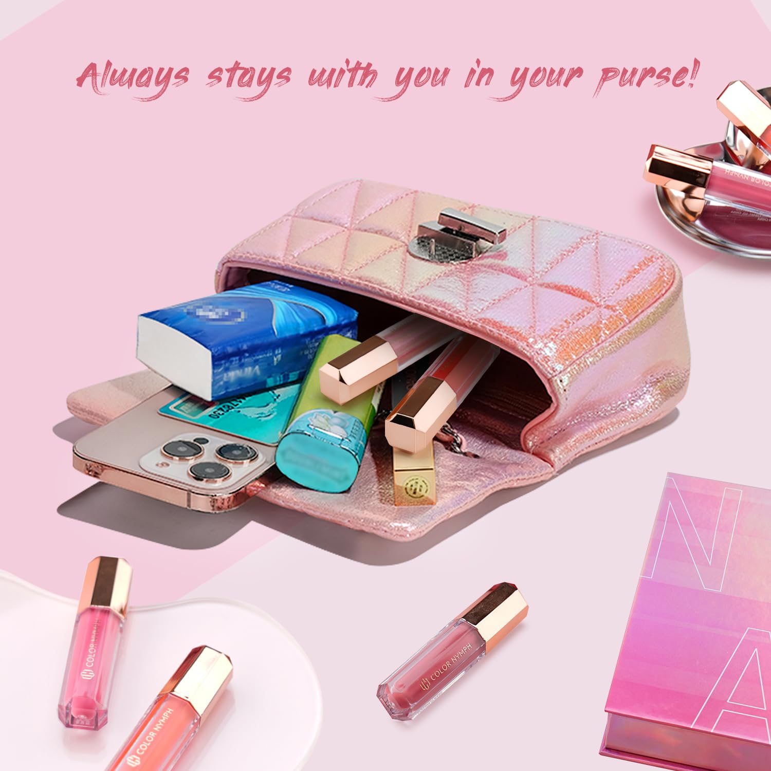 Color Nymph 16 PCS Lip Glosses Collection, Shimmery Lip Glosses for Women and Girls, Long Lasting Color Lip Gloss Set with Rich Varied Colors (Iridescent Pink)
