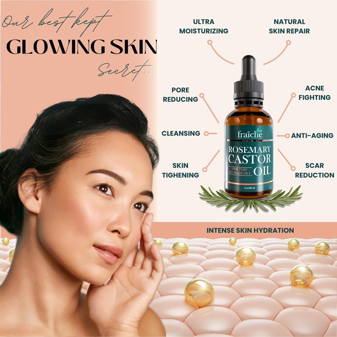 - GREAT FOR YOUR SKIN: who doesn't love an all purpose oil? Our rosemary castor oil can also be used as a natural skin moisturizer, rich in antioxidants, it helps to protect and smoothen your skin, reducing the appearance of lines. It can lock in hydration into the skin when applied post-shower. It also enhances skin elasticity to diminish stretch marks and can be used as a massage oil to relax your muscles.