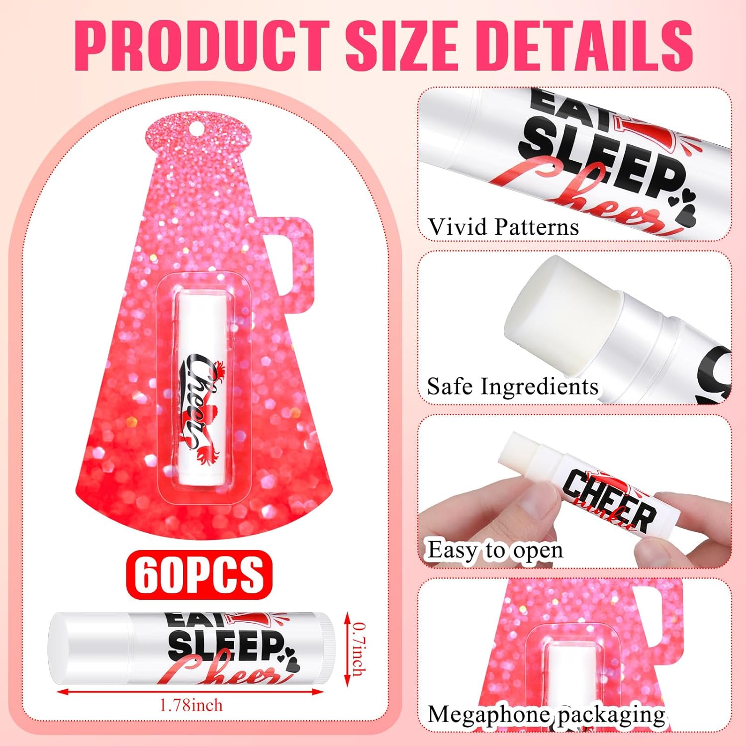 - Designed for Cheer Enthusiasts: our cheerleading gifts embrace the cheerleading theme with attractive trumpet shaped decoration; Each lip balm is boldly adorned with motivational slogans like 'LIVE LOVE CHEER', 'Eat Sleep Cheer Repeat' and more, to invigorate your spirit and passion