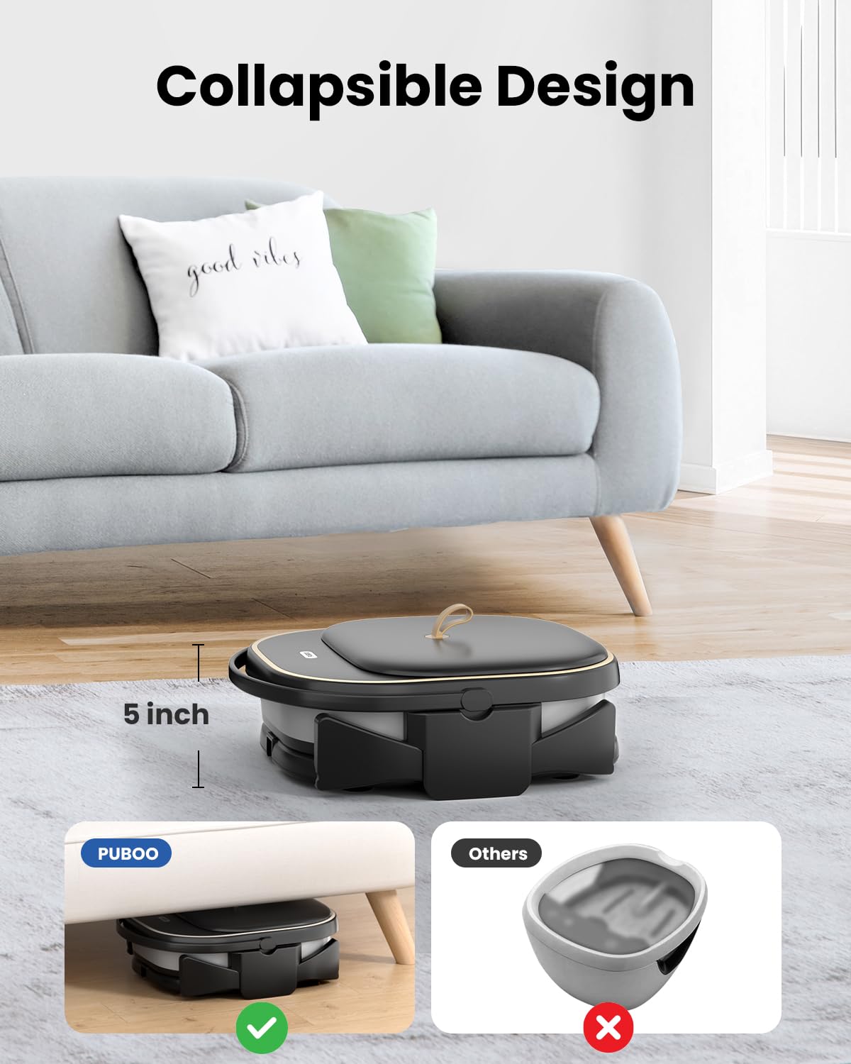 - Compact and Sturdy Design: This foot spa with remote features a collapsible design that folds to just 5.5 inches for easy storage under tables or in tight spaces. Sturdy foldable brackets ensure stability during use—just fully extend them before adding water.