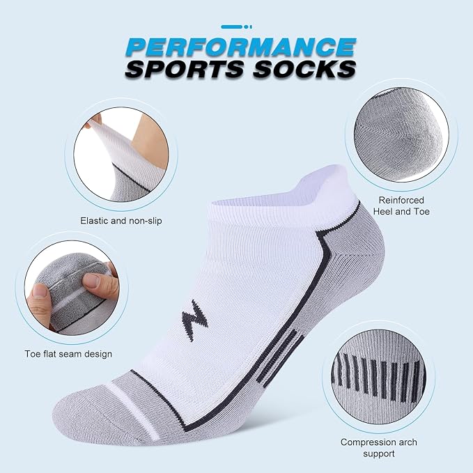 - Anti-Slip & Arch Support: Featuring ribbed cuffs and arch support, these athletic socks ensure a secure and comfortable fit. The compression band molds to your foot, keeping the socks in place whether you're running, walking, cycling, working out, or just tackling daily activities