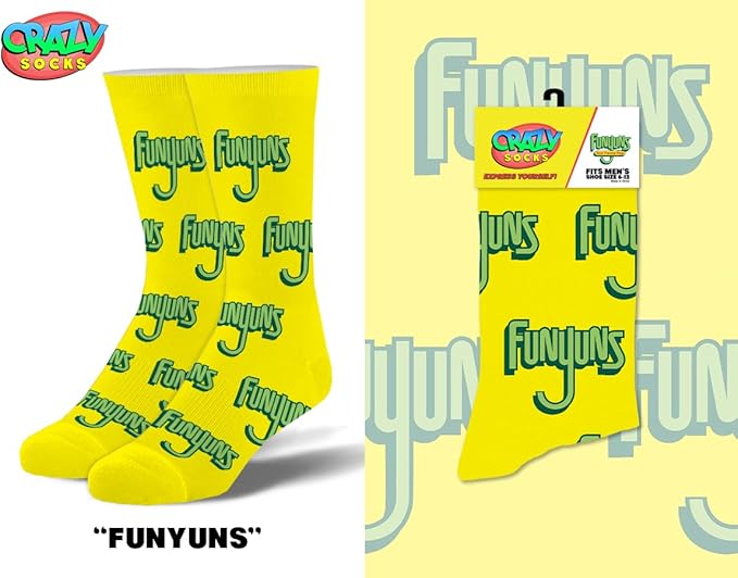 - [Snack-Inspired Style, 8-Pack Bundle] – Get the ultimate deal on officially licensed men’s crew socks featuring fan-favorite snack brands: Pringles, Doritos Cooler Ranch, Chester Cheetos, Flamin’ Hot Cheetos, Cheez-It, Ruffles, Funyuns, and Ritz Crackers. A bold, flavorful sock drawer upgrade!