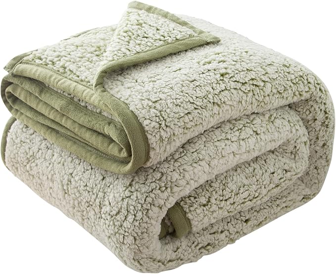 EMME Soft Sherpa Fleece Blanket Reversible Plush Fluffy Large Blanket, Light Weight Warm Decorative Boho Blanket Cover for Sofa, Couch, Bedroom,Travel(Plush Sage,108"x90")