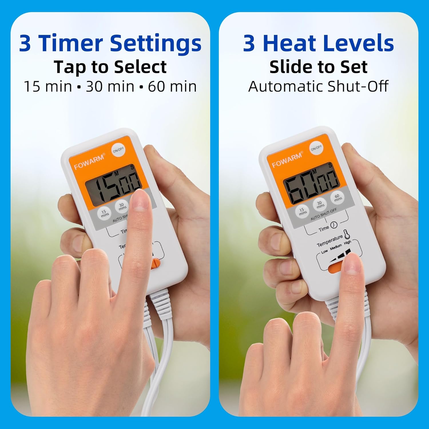 - ✱Smart Timer with Auto Shut-Off✱✱Choose from 15/30/60-minute sessions – perfect for quick warm-ups or deep treatments;Automatically powers down when time ends.