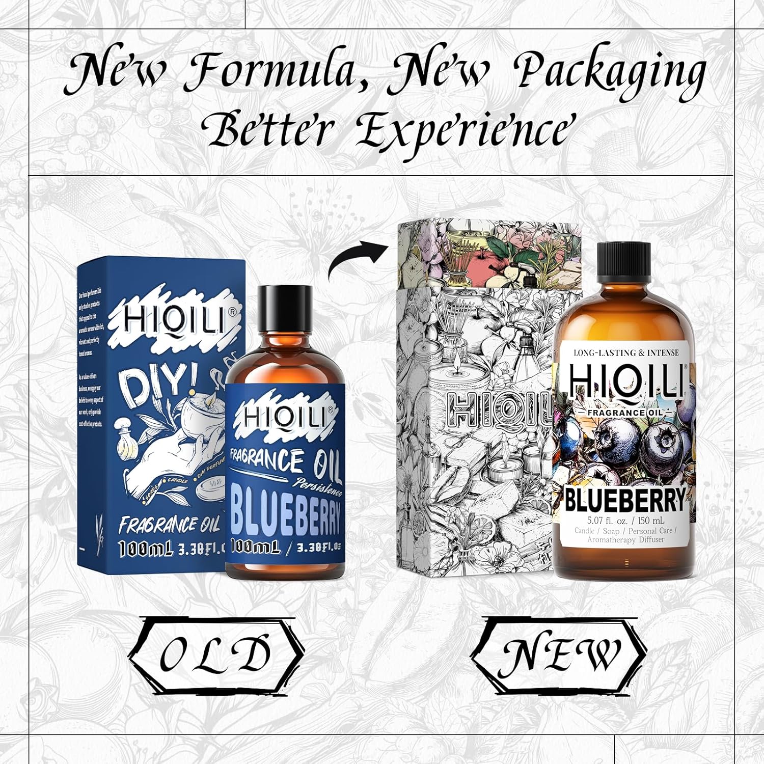 HIQILI Blueberry Fragrance Oil for Candle & Soap Making, Fruity Scents for Reed Diffuser Oil Refill, Add to Lotion, Body Wash - 5.07 Fl Oz