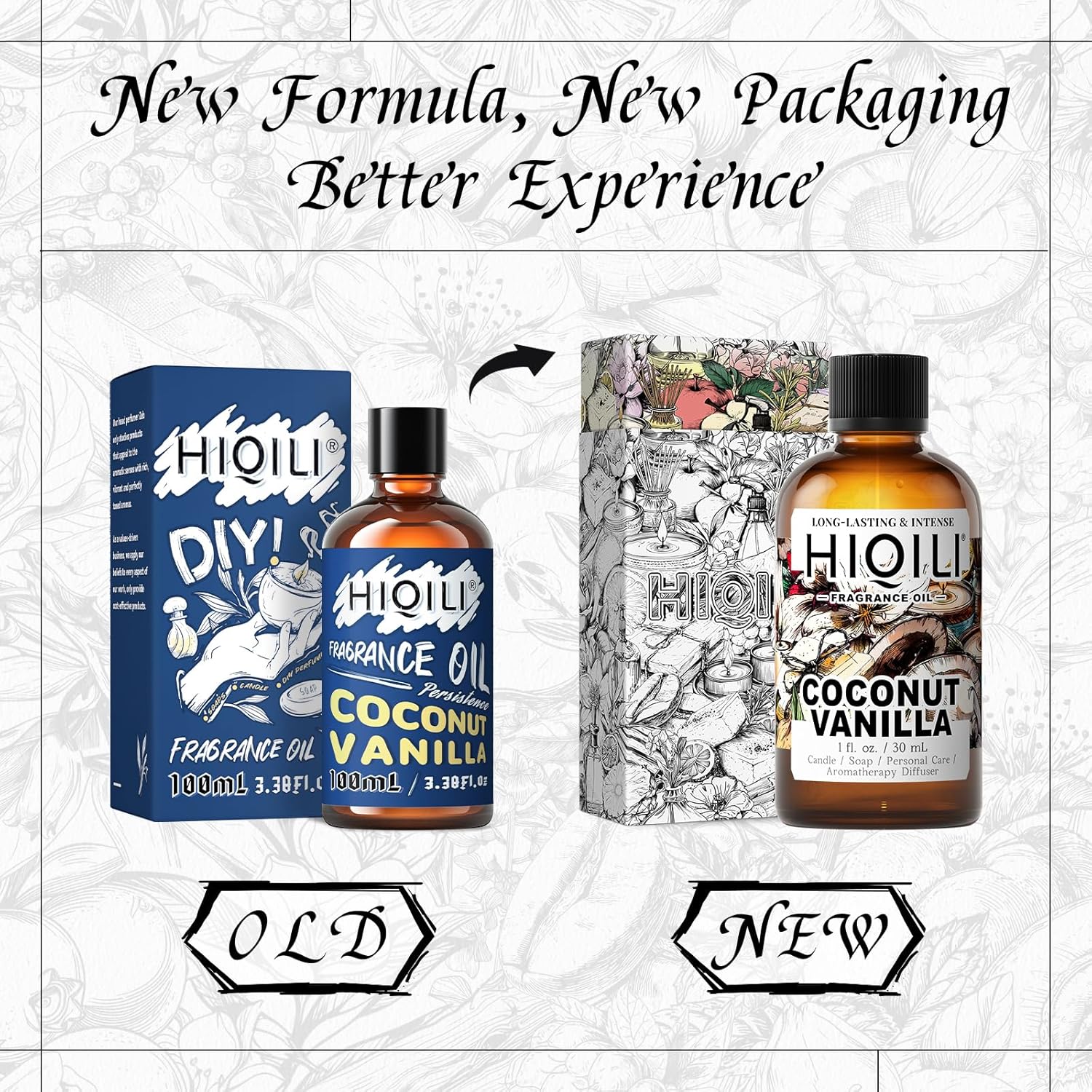 HIQILI Coconut Vanilla Fragrance Oil - for Candle Making, Soap Making, Essential Oil for Diffuser, Humidifier, Home& Hotel & Car Use - 1 Fl Oz