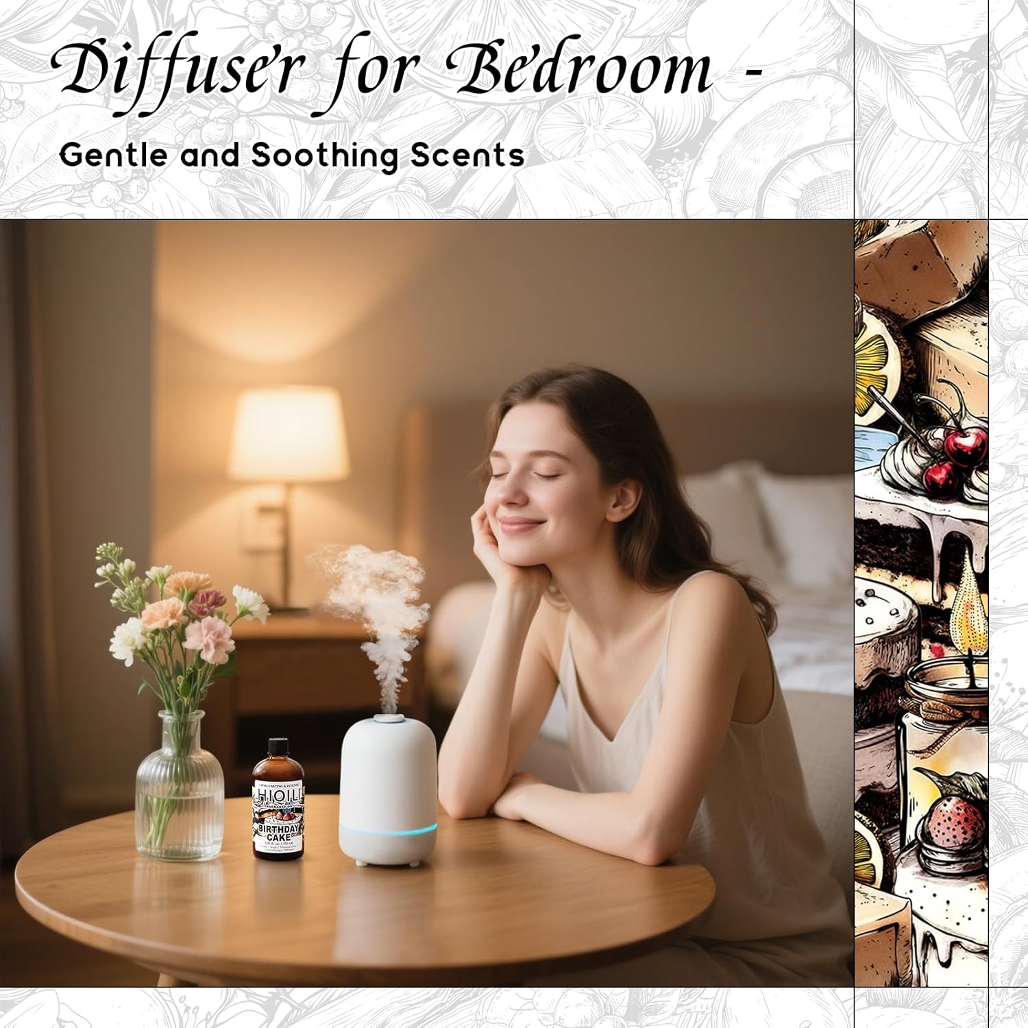 - Scene fragrance: Multiple scenes use - home, office, car, yoga/gym/spa studio, and drop it into diffuser or humidifier to instantly release a sweet scent, immersing you in a unique atmosphere