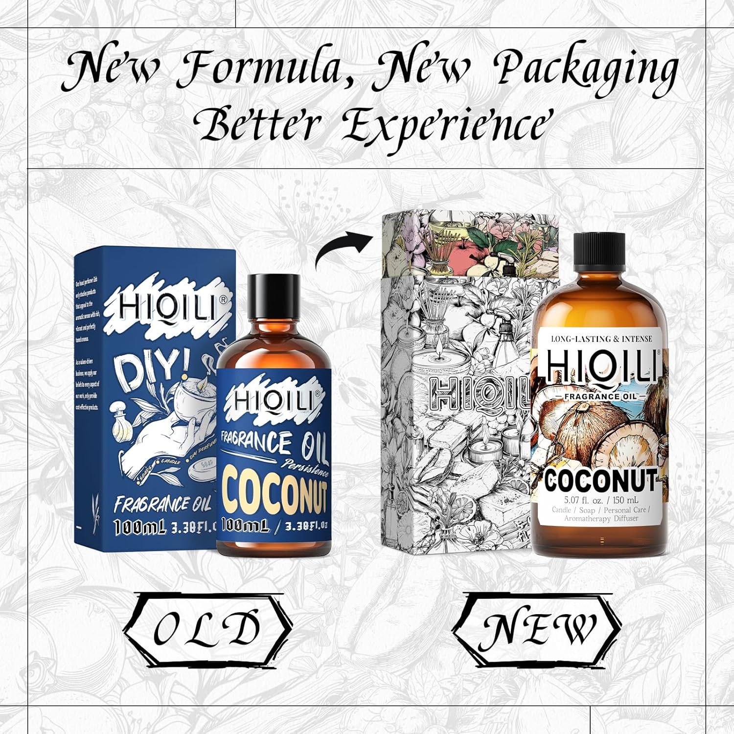 HIQILI Coconut Fragrance Oil for Home Diffuser, Ideal for Making Candle, Soap, Body Spray, Women's Perfume, Creamy Scents - 5.07 Fl Oz
